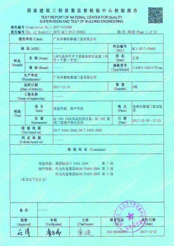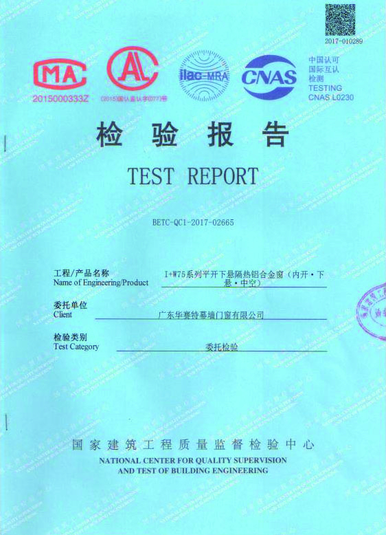國家建筑工程質(zhì)量監(jiān)督檢測中心檢測報告